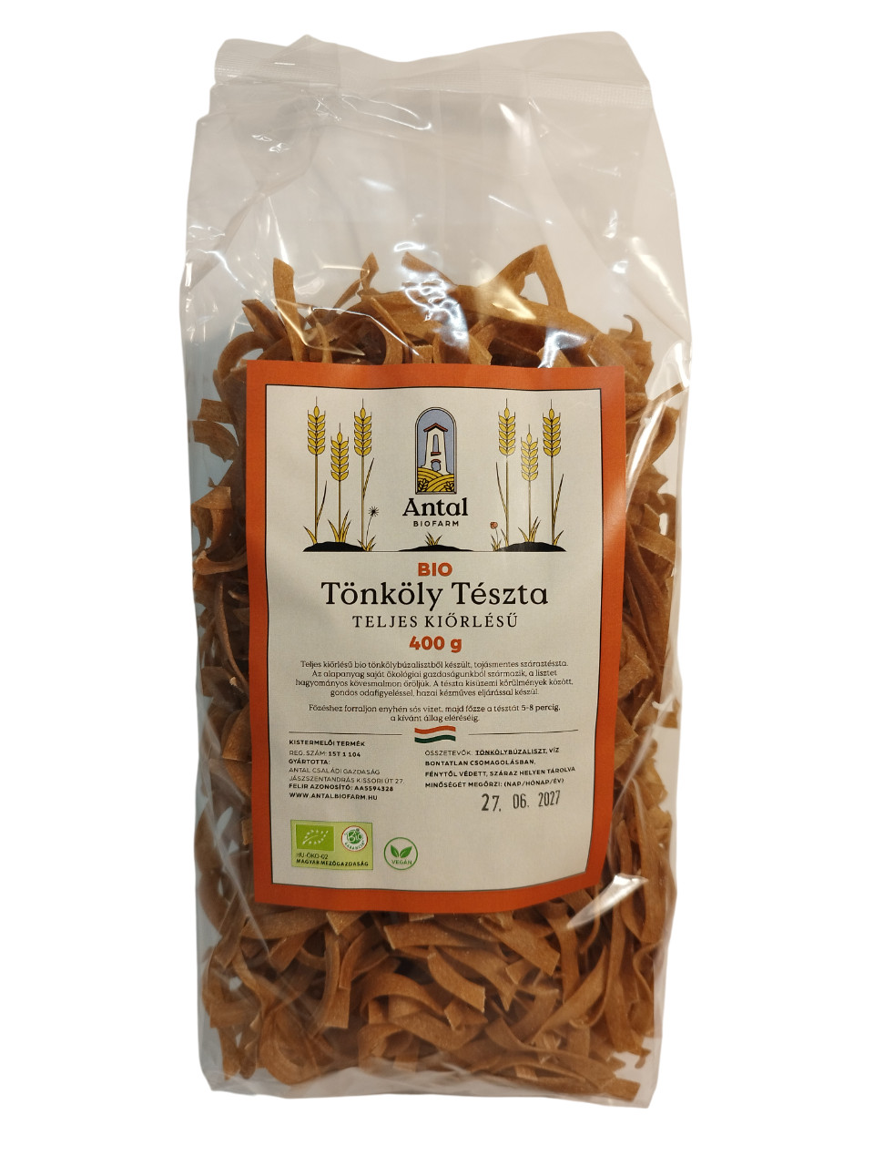 Tésztáink ellenőrzött ökológiai gazdálkodásból származó tönkölybúzából készülnek, hagyományos eljárással. A tönköly ősi gabonaként nemcsak tápláló, de jellegzetes, enyhén diós ízével különleges karaktert is ad az ételeknek. A teljes kiőrlésű tönkölytészta a gabonaszem minden részét tartalmazza – a korpát, a csírát és a magbelsőt –, így magas rost-, ásványianyag- és fehérjetartalommal rendelkezik. Miért válaszd? Ősi gabonából készült – a tönkölybúza egy évezredek óta ismert fajta, amely csak enyhe nemesítésen esett át, így megőrizte természetes beltartalmi értékeit. Magas rosttartalom – segíti az emésztést, támogatja a bélflóra egészségét és hozzájárul a hosszabb telítettségérzethez. Több fehérje, kevesebb glutén – a modern búzához képest magasabb a fehérjetartalma, de a gluténszerkezete enyhébb, könnyebben emészthető. Stabilabb vércukorszint – alacsonyabb glikémiás indexének köszönhetően kevésbé emeli meg hirtelen a vércukorszintet. Tápanyagban gazdag – természetes forrása a B-vitaminoknak, vasnak, magnéziumnak és cinknek. Jellegzetes, enyhén diós íz – különleges karaktert ad a legegyszerűbb tésztás fogásoknak is. Mentes minden feleslegestől – nincs benne adalékanyag, tartósítószer vagy mesterséges összetevő. Tojásmentes száraztészta. Összetevők: Bio tönkölybúzaliszt, víz. Tárolás: Fénytől védett, száraz helyen. Minőségét megőrzi: Bontatlan csomagolásban, a gyártástól számított 2 évig. Családi gazdaságunkat a Bio Garancia Kft. tanúsítja.
