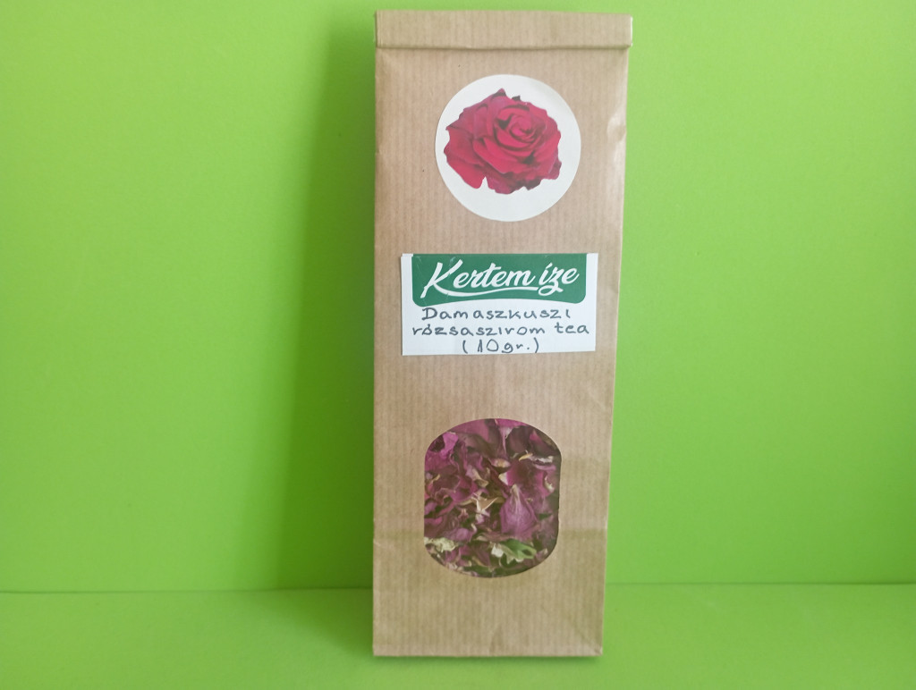 Damaszkuszi rózsaszirom tea A Damaszkuszi rózsa az egyik legrégebbi fajta a rózsák között , évezredek óta termesztik . Nálam csak 3 éve található meg , mostanra már bőségesen hozzák gyönyörű virágaikat . 13 bokor és 5 különböző változat damaszkuszi rózsám van . ( Rose de Rescht , Cardinal Richeleu , Astrid Garfin , Heidi Klum , Jacques Carter ) A rózsából készült teának számos jótékony hatással rendelkező ital . Hangulat javító , stresszoldó hatású . A rőzsaszirom tae csökkenti a szorongást , elősegíti a pihentető alvást . Antibakteriális hatása miatt alkalmas gyomor és bélfertőzések kezelésére . Enyhíti az emésztési problémákat ( puffadás , hasmenés )